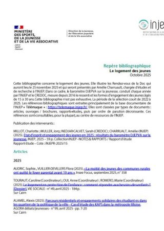 Le logement des jeunes – Bibliographie / Centre de ressources – INJEP, 2025/09