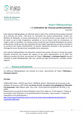 Cette sélection bibliographique est effectuée dans le cadre d’une recherche documentaire émanant de la Direction des sports. Elle porte sur l’animation des réseaux professionnels. D’après une définition de Wikipedia, un réseau professionnel est un ensemble de liens sociaux forgés sur le lieu de travail ou par le biais d’organismes spécialisés en vue de trouver selon les circonstances, un emploi ou bien un travailleur. Les réseaux sociaux actuels tels que Facebook développent les réseaux professionnels, tandis que des sites spécialisés tels que Viadeo regroupent les personnes cherchant à se construire des réseaux professionnels. Ils peuvent notamment permettre à des personnes au chômage de trouver des personnes susceptibles de les embaucher.